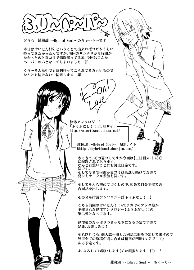 2026/03/05 01:06 コメント [PR] ×[PR]上記の広告は3ヶ月以上新規記事投稿のないブログに表示されています。新しい記事を書く事で広告が消えます。 2011/07/13 01:12 100絵2011春の陣 #100e_11s 0コメント 94/100【手】#100e_11s はい、また手です。そう、つまりは修羅場ってる。もっと手が早くなりたい。あともっと集中力がほしい。あ、律澪アンソロジー入稿終わりました。ので、出ます。宜しくお願いします。 [0回]PR 2011/07/11 20:00 100絵2011春の陣 #100e_11s 0コメント 93/100【Listen律澪】#100e_11s ボツにした原稿からListenの衣装って律澪しまくってて大好きです特に互いが向かい合うとシンメトリーになるようになってるのがムッチャいいです [0回] 2011/07/11 00:34 100絵2011春の陣 #100e_11s 0コメント 92/100【けいほん!ペーパー】#100e_11s 今日(もう昨日か)綿商会館にて開催されたけいほん!!5にて配布したフリーペーパーです。本日、参加されたサークル、一般、スタッフの皆様、本当にお疲れ様でした!!無茶苦茶楽しかったし、無茶苦茶刺激になりました!!ありがとうございました!!今後とも宜しくお願いします!!! [0回] 2011/07/09 21:16 100絵2011春の陣 #100e_11s 0コメント 91/100【模写とかラクガキとか】#100e_11s 明日はけいほん!ですね。俺は【ぶ-04】にいます☆サンクリ新刊と既刊を持って行きます♪宜しくお願いします! [0回] 2011/07/08 21:51 100絵2011春の陣 #100e_11s 0コメント 90/100【背景】#100e_11s 模写模写ムシャムシャ背景の色選びムズイです紫とか青よりは赤、黄色系統のほうがまだ選び安い気がする情熱の赤~燃えているよ~♪ [0回] 2011/07/08 00:25 100絵2011春の陣 #100e_11s 0コメント 89/100【手】#100e_11s 今日は集中力が迷子…… [0回] 2011/07/07 01:35 100絵2011春の陣 #100e_11s 0コメント 88/100【手模写】#100e_11s 最近この手の模写多く無い?って?修羅場ってるんです…お察しください…> < [0回] 2011/07/05 09:02 100絵2011春の陣 #100e_11s 0コメント 87/100【律澪】#100e_11s むぅ、キャラ簡単に絡ませるだけでも四苦八苦……もっと体うまくなりたい [0回] 2011/07/05 01:27 100絵2011春の陣 #100e_11s 0コメント 86/100【ゆるゆり】#100e_11s ゆるゆり始まるよー!!ってなわけで船見 結衣ちゃん!! [0回] 2011/07/04 00:06 100絵2011春の陣 #100e_11s 0コメント 85/100【律澪ラフ】#100e_11s キャラ全身絵もっとうまくなりたい…… [1回] 2011/07/02 22:11 100絵2011春の陣 #100e_11s 0コメント 84/100【むぎゅうううううハピバ!】#100e_11s 本日7月2日は紬お嬢様のお誕生日にございます。むぎゅうううううううううう、お誕生日おめでとおおおおおおおお!!!!!!後、律澪アンソロサイト更新しました☆表紙、執筆者一覧公開です!↓【追記】コメントレス~アンソロ2、楽しみですね。書店委託されるなら、メロンとZINの両方でお願い出来れば嬉しいです。いつも読んでいただいて本当にありがとうございます!!アンソロ2も楽しみにしていただいてて、こちらも気合が入るってものです!委託に関しては近日中にご案内出来ると思いますので今しばらくお待ち下さい^ ^宜しくお願いします☆ [5回]